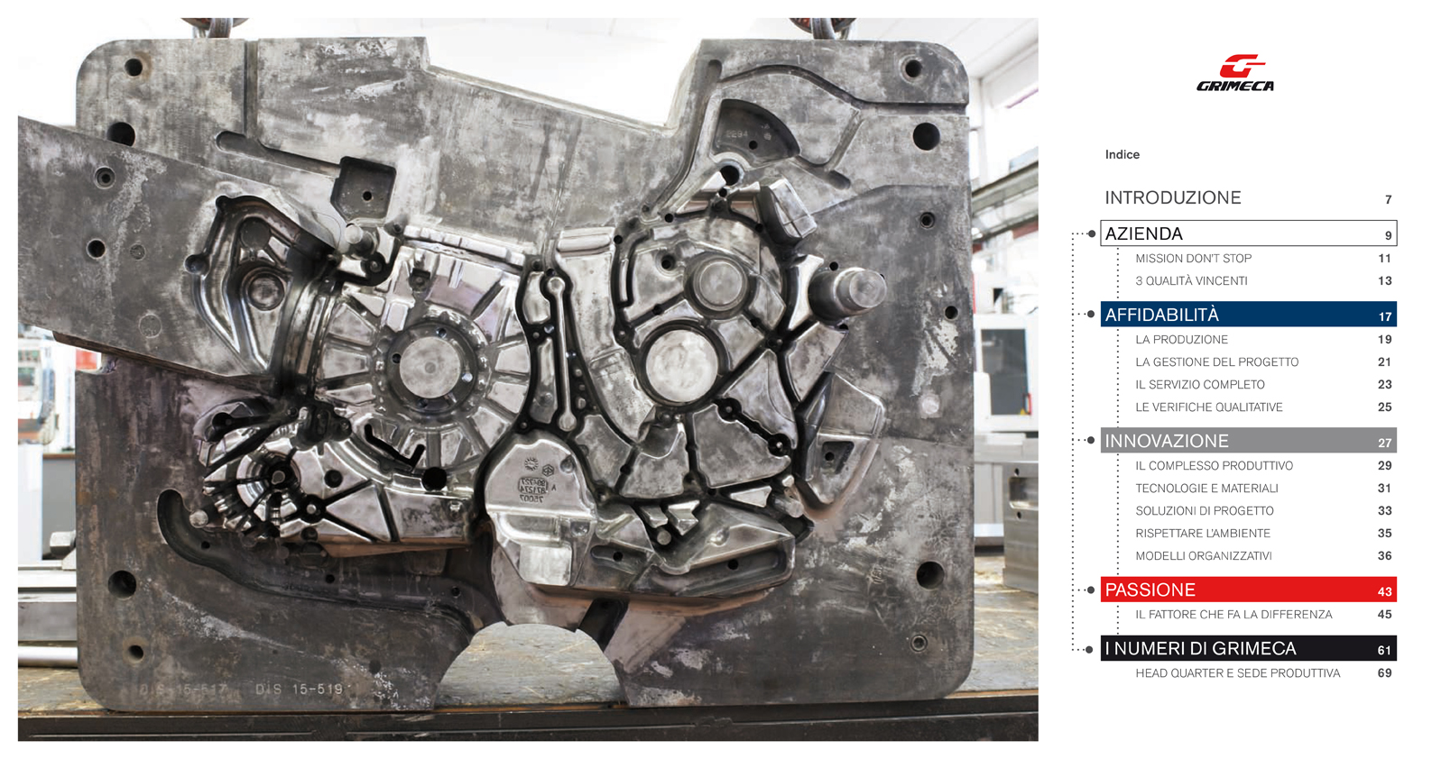 Illustrare il mondo Grimeca rivolgendosi ai due pubblici di riferimento dell'azienda: l'industria dell'automotive ed il consumatore finale. Creare uno spazio facilmente fruibile e di forte impatto comunicativo.