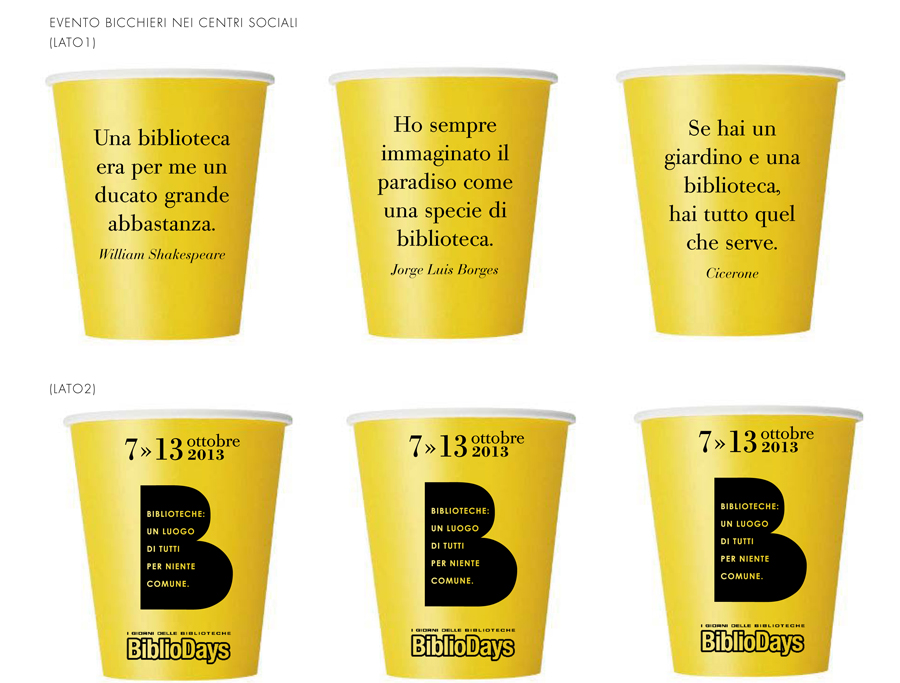 L’idea portante, semplice ed incisiva, è quella di utilizzare la “B” di biblioteca quale forma protagonista di un design che richiami lo stile della carta stampata e gli elementi della tradizione editoriale. Il logo così concepito, viene declinato in 6 differenti cromie per le applicazioni pratiche che illustreremo. Il pay off, inscritto all’interno del logo, contiene e fonde insieme, nello spazio di 8 parole, i concetti di “accoglienza”, “bene comune” e biblioteca come luogo sorprendente da scoprire.